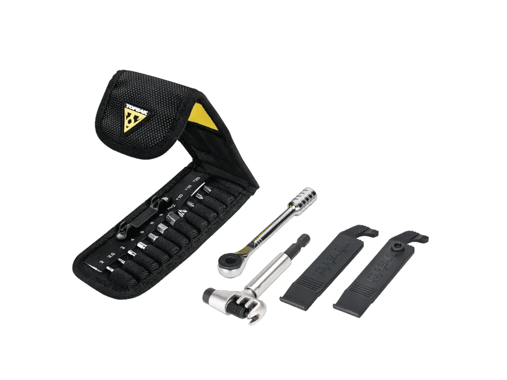 A pocket-sized tool that houses all the necessary functions, such as hex wrenches, Torx bits, spoke wrenches, chain breaker, bottle opener, and screwdrivers, can be a reliable option during unexpected repairs and maintenance.
